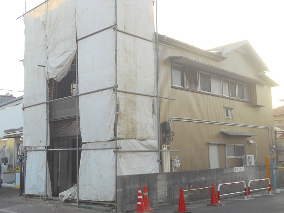 2013/3/20足場を架けての解体撤去が進んでいます。 これが済むと改修作業へと移ります。
