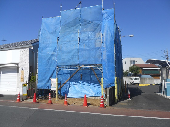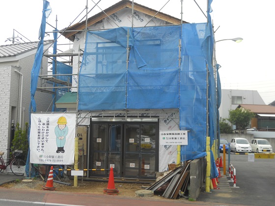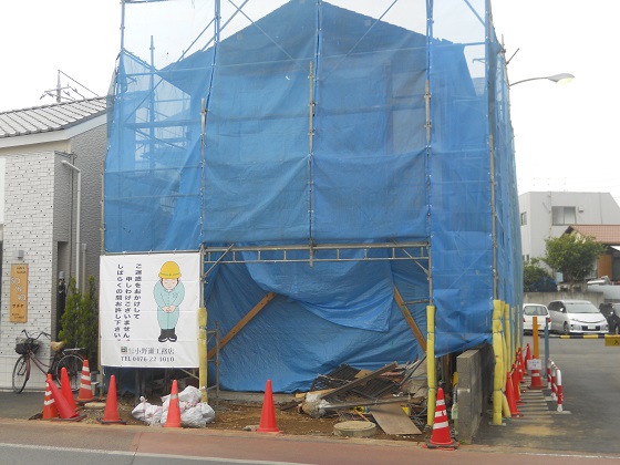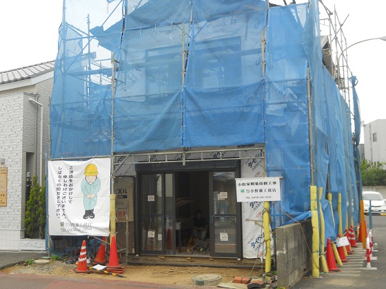 2013/5/1青いシートの囲いで見えませんが、店舗の飾り屋根を取付けています