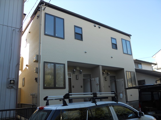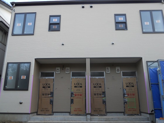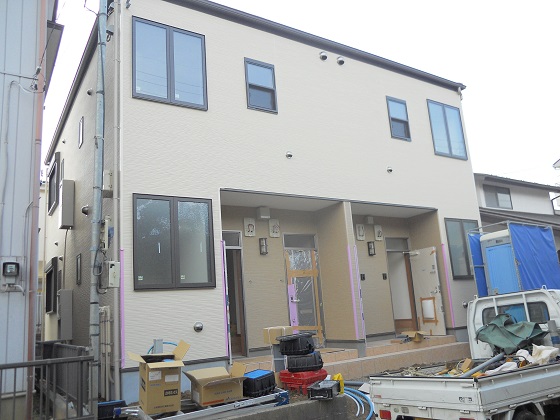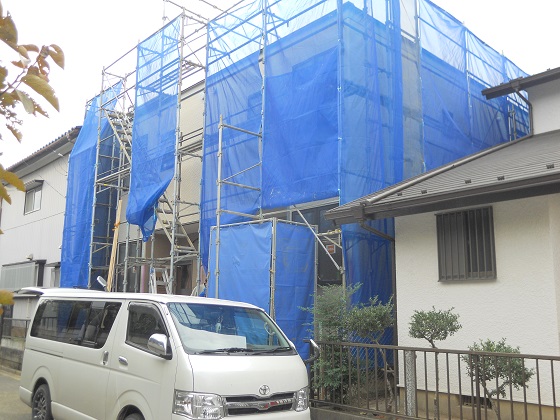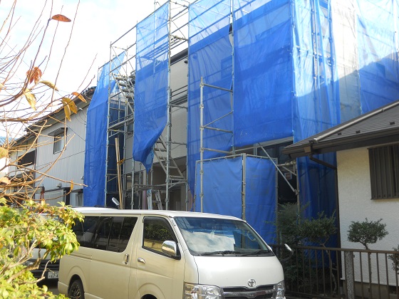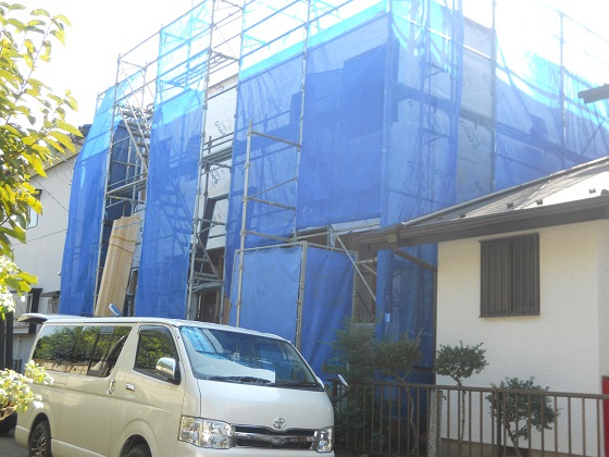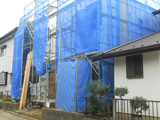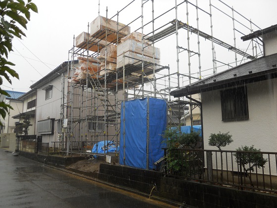サッシの取付けも済み、続いて外壁貼りに進みます